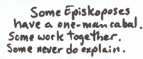 UN VESCOVO DELLA SOCIETA' DISCORDIANA è uno che preferisce la totale autonomia e creare la sua propria setta Discordiana secondo la direzione che la Dea gli indica. Parla per se stesso e per coloro che apprezzano ciò che dice.
