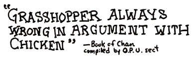 Un giorno Zarathud condusse i suoi studeni a un piacevole pascolo a lì si incontrò con il Sacro Cao [N.d.t. gioco di parole con cow - mucca intraducibile] mentre Ella stava felicemente pascolando.